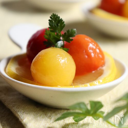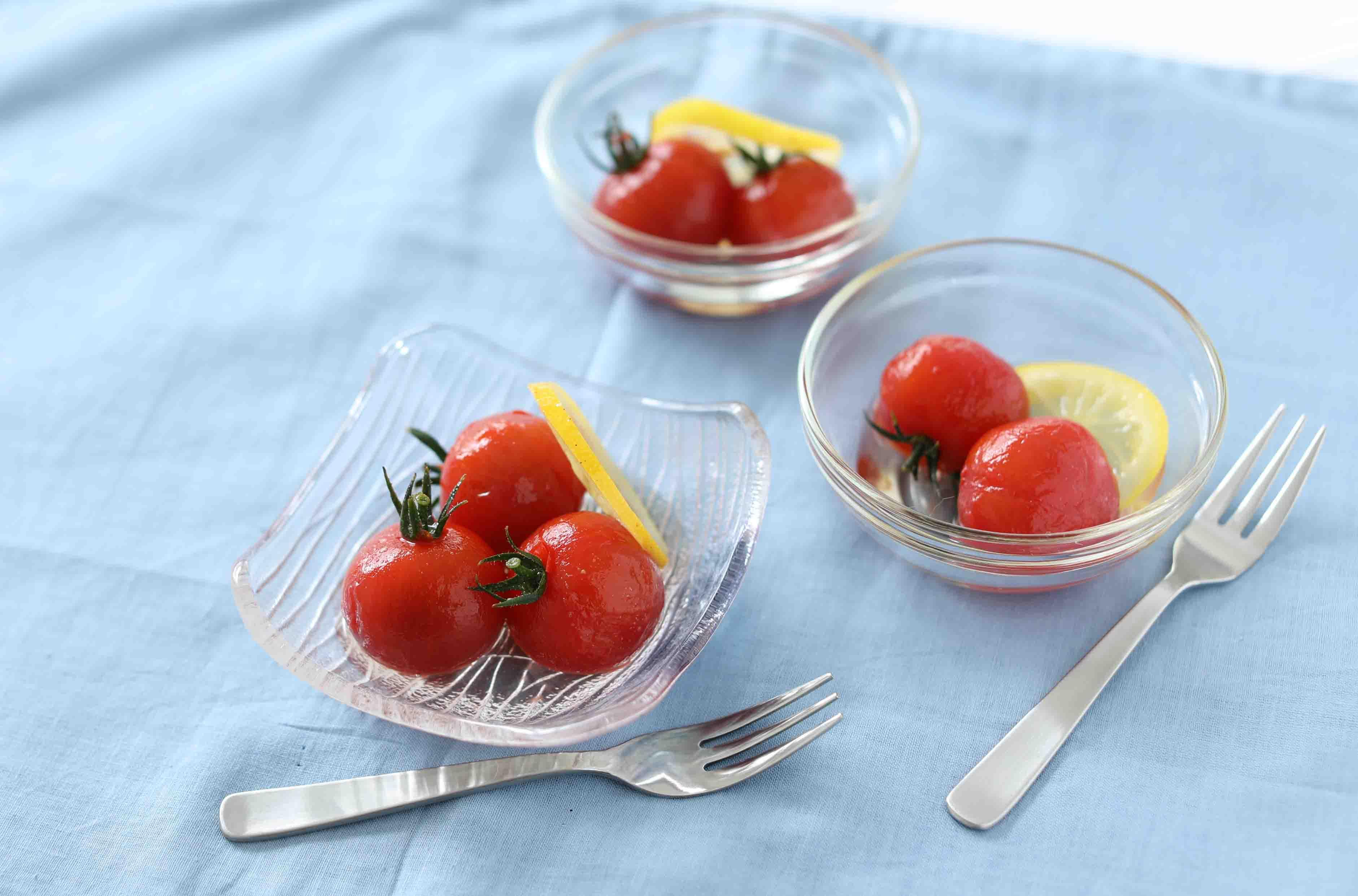 夏のデザート! レモン風味の甘酸っぱミニトマトコンポート。