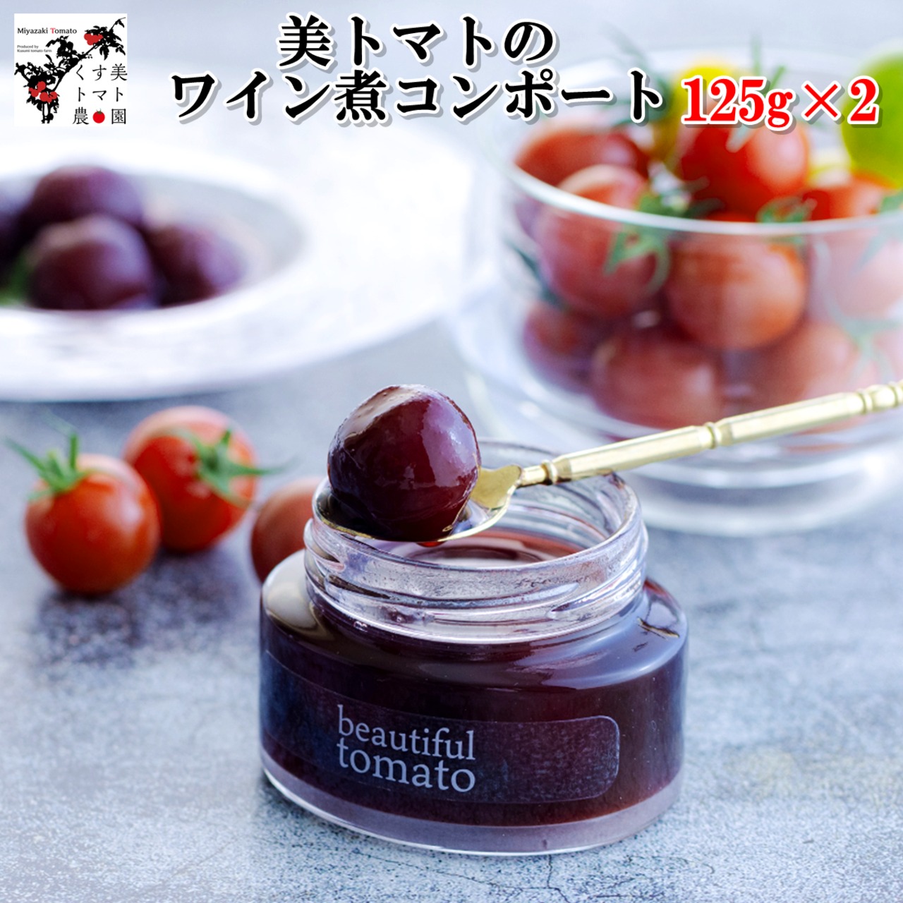 送料無料 美トマトのワイン煮コンポート 125g×2個セット プレゼント ギフト お取り寄せ 贈り物 贈答用 国産 宮崎県産 無添加 おうちごはんグルメ お買得 当店オススメ売れ筋日本のひなた 宮崎特産市場。