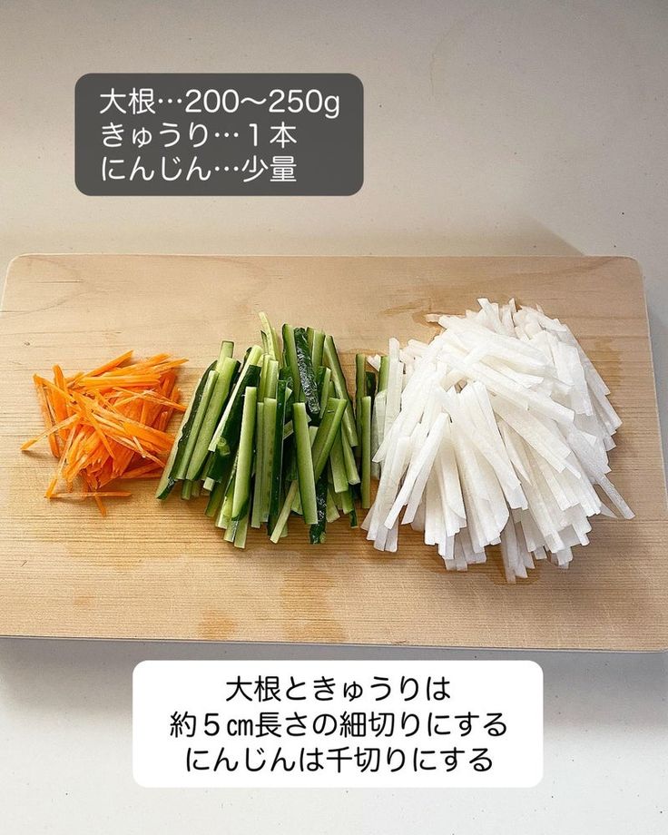 切って和えるだけ!千切り大根のさっぱりキムチ。即席もOK ♪ムセンチェカライチ。