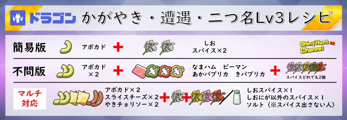 かがやきパワー lv3 ドラゴンのレシピを紹介。