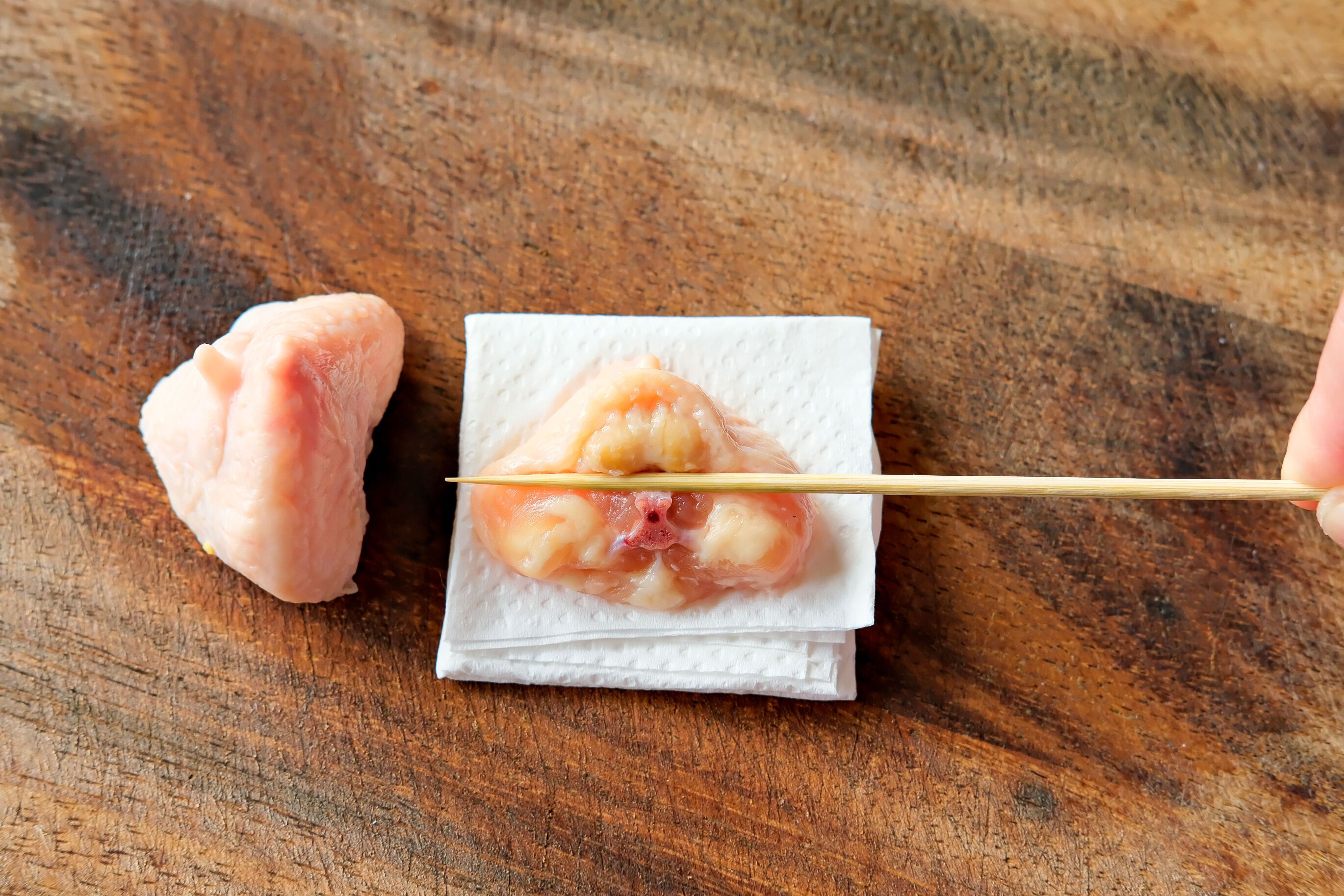 ぼんじりの下処理方法♪ 油壷を取って臭みなし! くぅのおうち居酒屋。