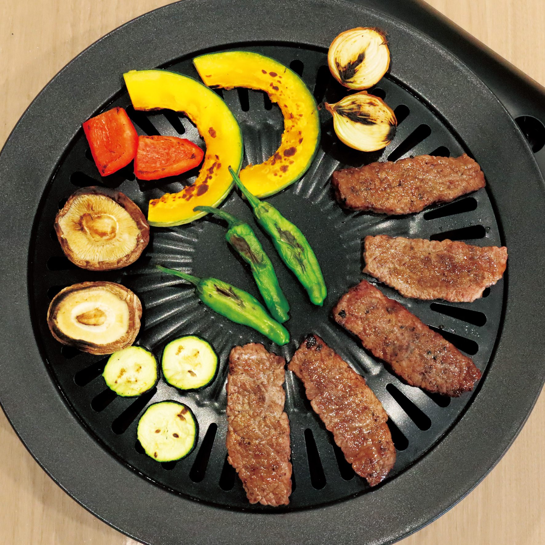 無煙焼肉プレートで快適な家焼肉を楽しむ。