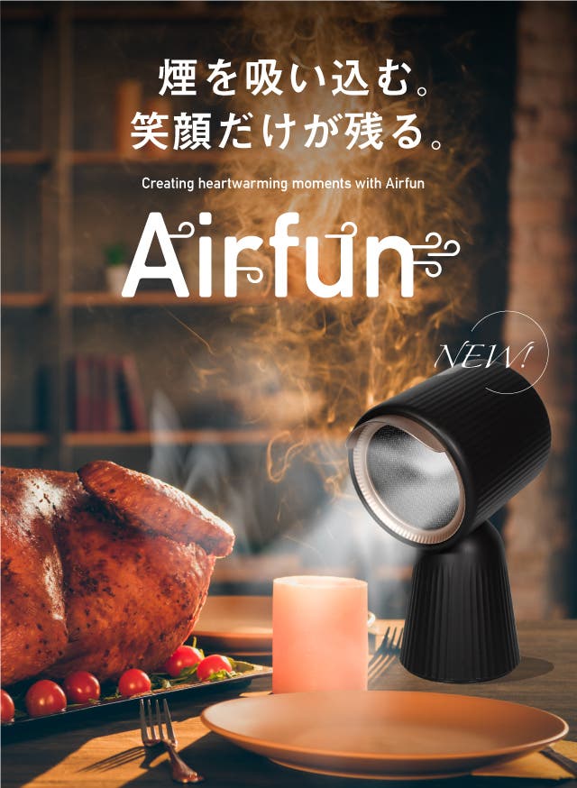 新商品発売 「お家焼き肉の新常識、煙も匂いも気にならない新しい食卓の形を。」”AirGrill”,従来の無煙グリルが“吸うだけ”だったのに対し、AirGrillは**「送る+吸う」ダブルの仕組み**で煙やニオイを抑えるのが最大の特長です。,お家焼き肉のニオイや後片付けに悩まされることなく、快適に食卓を楽しむことができます。, 「今日は家で焼き肉しよう!」,。