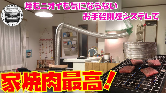 DIY 排煙ダクトで焼肉の煙対策!ダイソー商品とダクトを使って作る自由自在な簡単・排煙ダクト!予算は2000円以内で脱着可能。マンション・アパート のおうち焼肉も、気になる煙や匂いを解決! - YouTube。