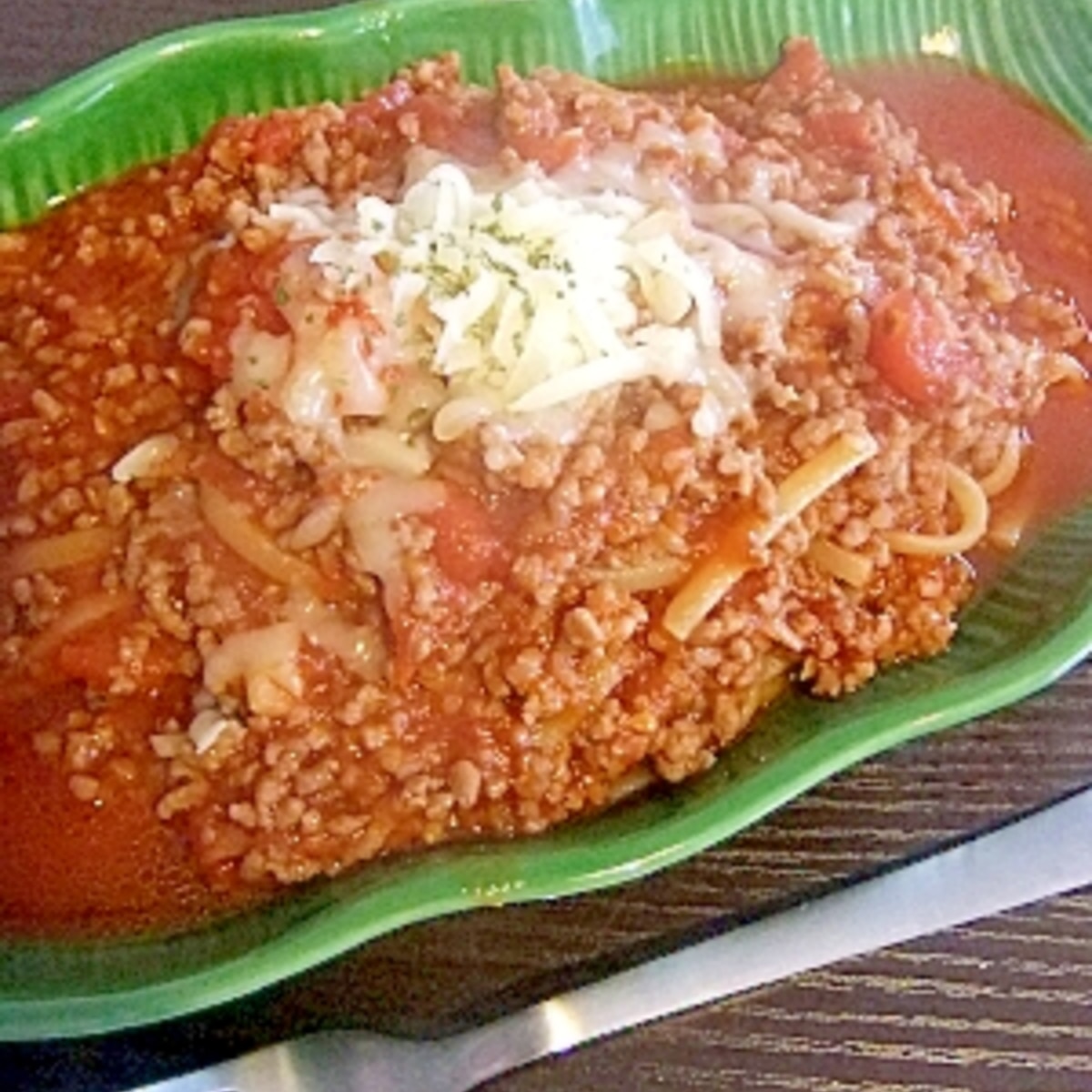 ひき肉とトマト缶で★ボロネーゼ風スープスパゲッティ。