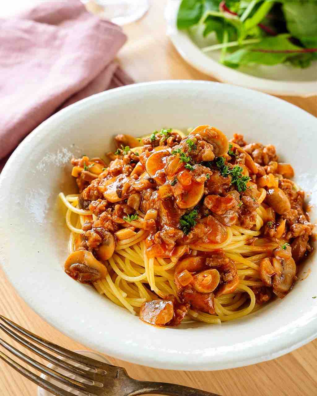 野菜の甘みがひきたつ!トマト缶を使わない簡単本格ボロネーゼのレシ。