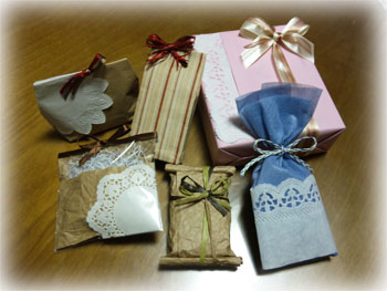 レースペーパーを使ったラッピング。 - ラッピング教室。