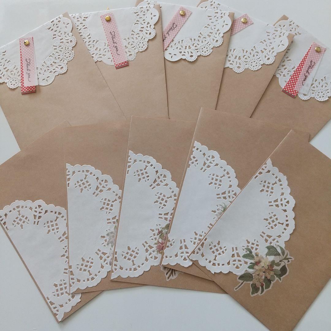 ハンドメイド封筒 平袋 紙袋 ラッピング レースペーパー コラージュ ポチ袋 - メルカリ。