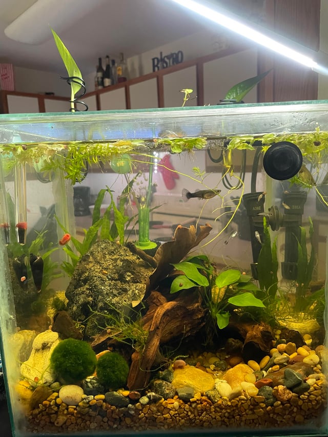 rota on X: "アクアリウムと水耕栽培 ハイドロポニックス を同時に行うアクアポニックス。長期水換え不要コケ取り不要、更に野菜収穫を目指す。立ち上げから4ヶ月半。 メイン水槽 60cm 加温 小型魚40 エビ 無数 亜熱帯植物 ユーカリ 葉野菜 クレソン サブ水槽 45cm 無加。