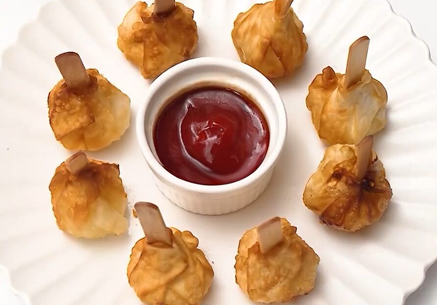 一口で食べやすい! 餃子の皮でおつまみキャンディ。