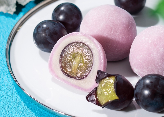 新商品情報8月限定 “ぶどうのおいしさを贅沢に感じる”大粒の国産種なしピオーネ使用『ぶどう大福』18日間限定販売NEWSCAST。