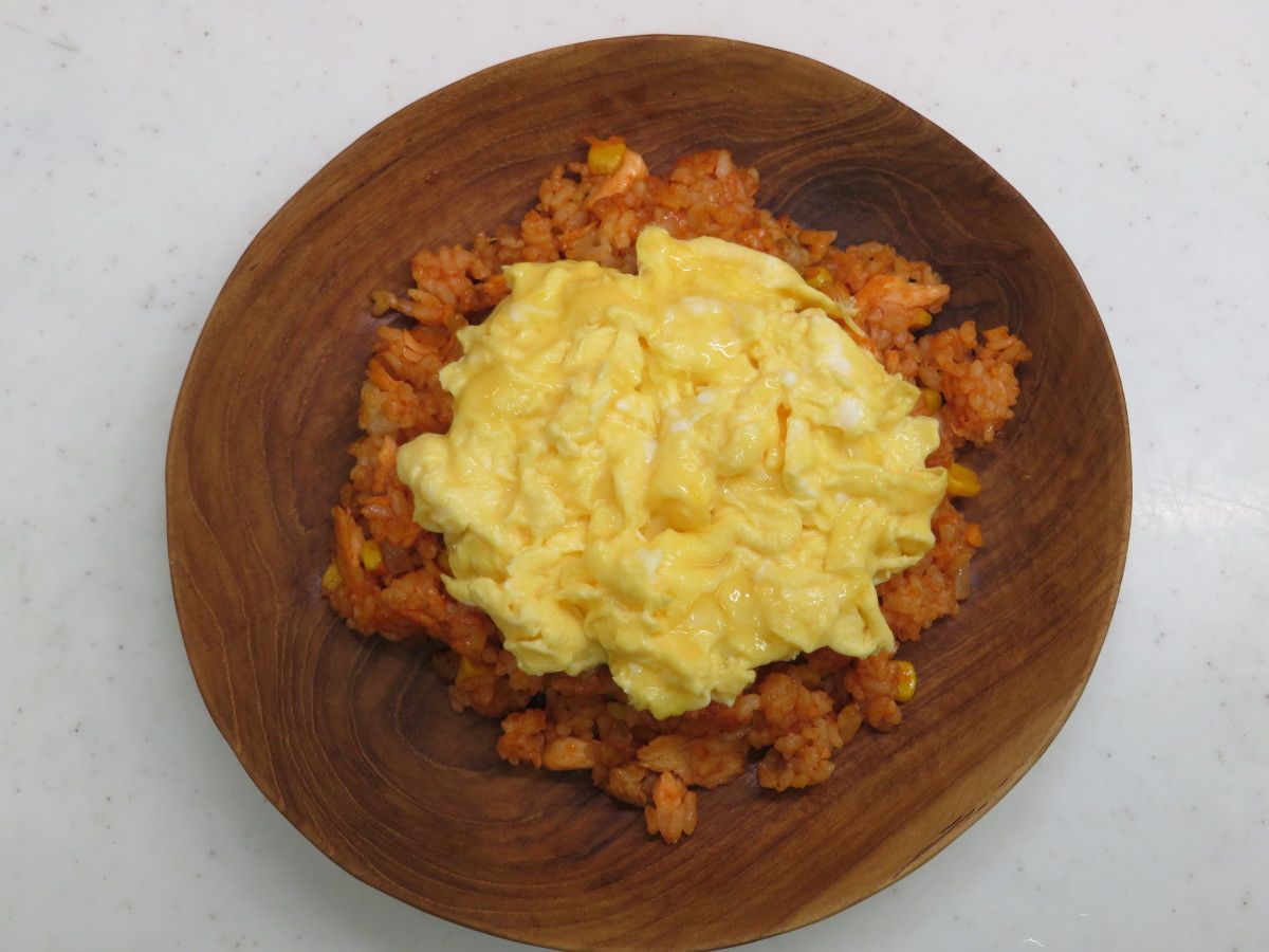 幼児食に!ふんわり卵に鮭が入ったオムライス♡。