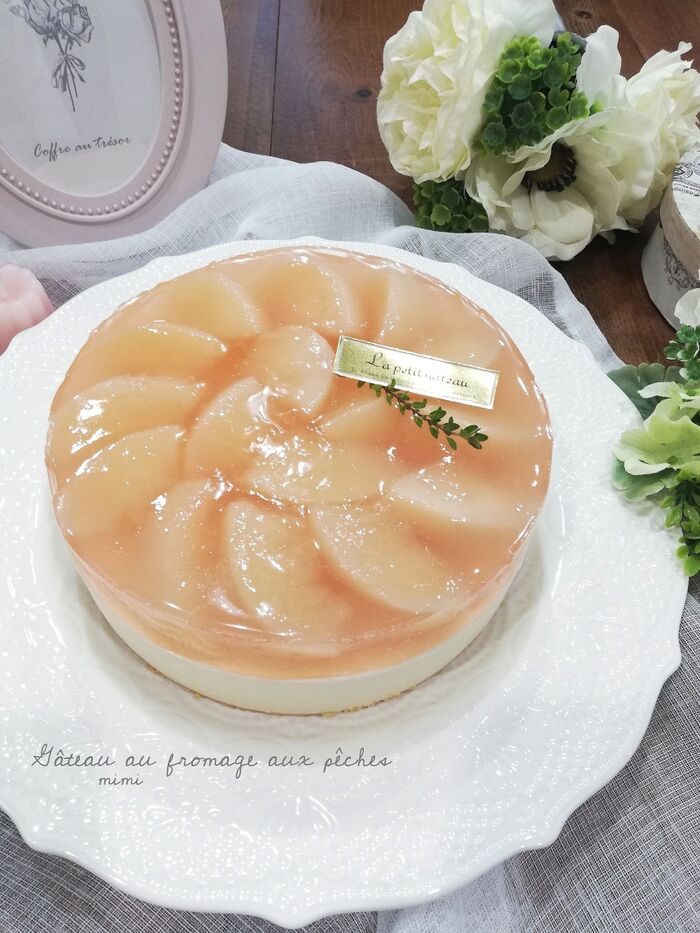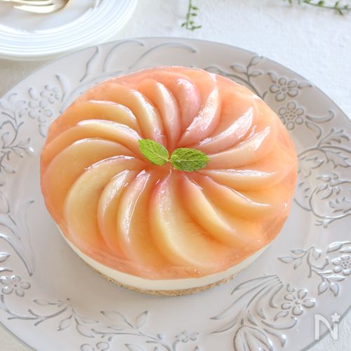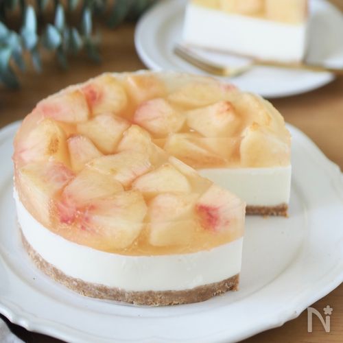桃のレアチーズケーキ🍑No-bake Cheesecake with Peach jelly Topping。