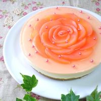 桃バラのレアチーズケーキ虹色カフェのお家レシピ。