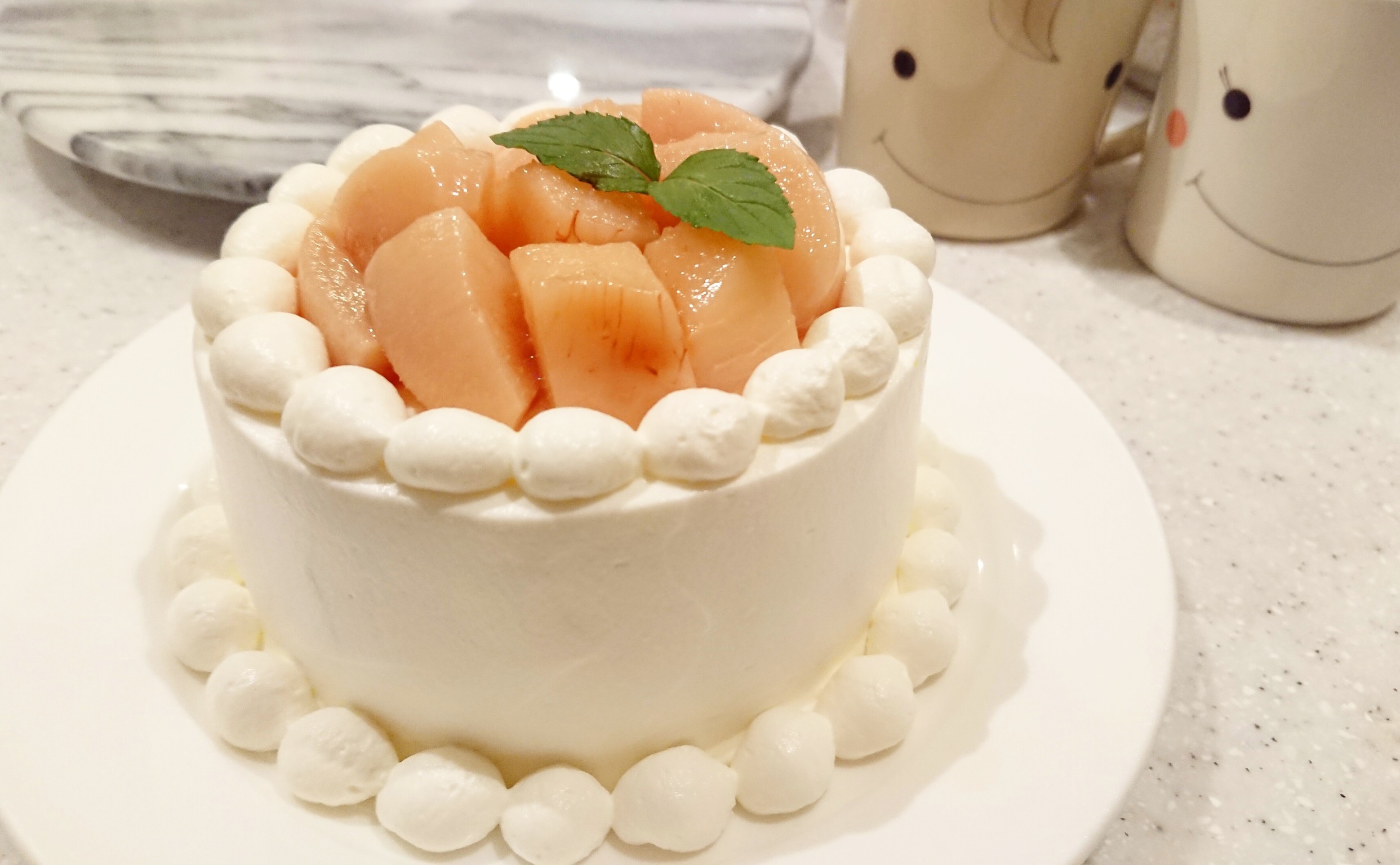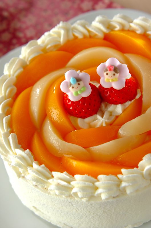 桃のケーキバースデーケーキ : きゃらめるみるく。みぃのほんわか お菓子レシピ。