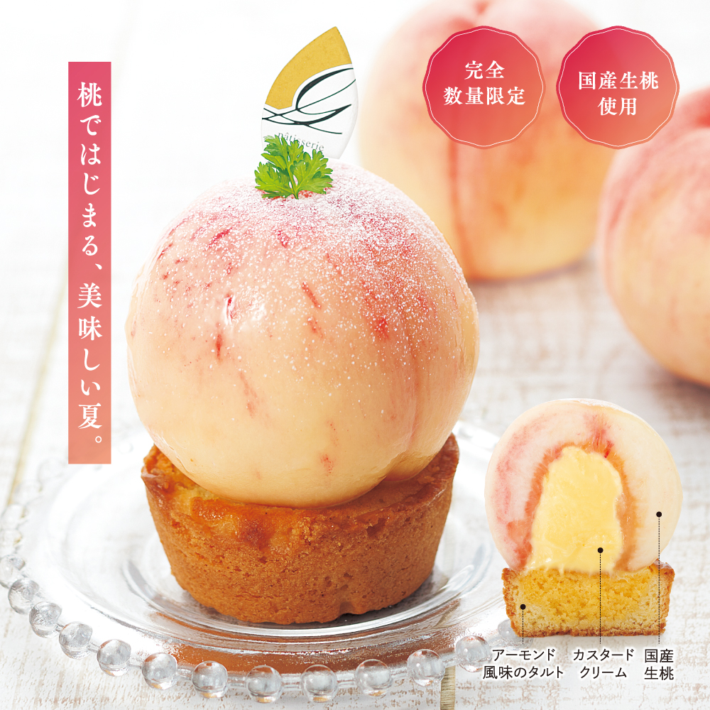 夏の新作ケーキ 「PÂTISSERIE PINÉDE パティスリーピネード 」より、旬の桃を使用した季節限定ケーキが新発売株式会社オールハーツ・カンパニーのプレスリリース。