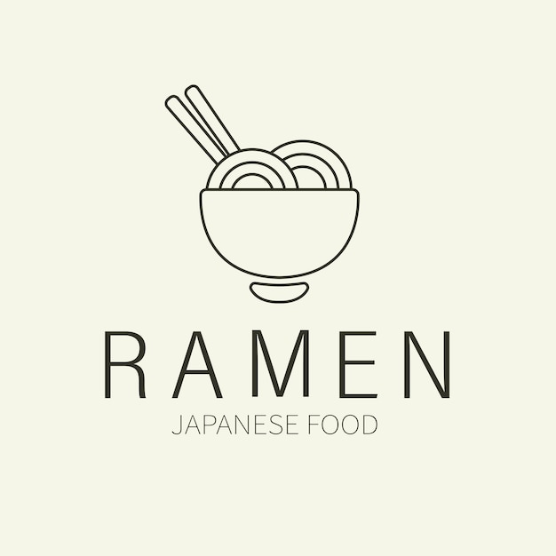 ラーメンのシンプルなロゴデザイン どんぶりのラーメンのイラスト付き 企業関連の飲食店向けPremiumベクトル素材。