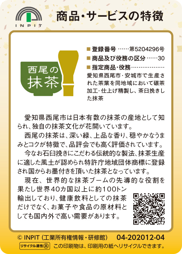 INPIT 西尾の抹茶独立行政法人 工業所有権情報・研修館。