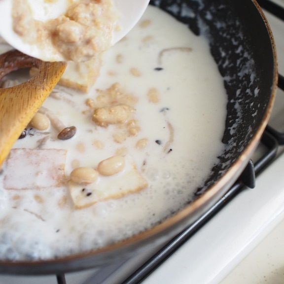 管理栄養士・料理家成澤文子 Ayako Narisawa\厚揚げの肉味噌グラタン レシピ ELLEgourmet エルグルメ デジタル版旬の食材レシピ グラタンの巻にてレシピをご紹介しております。 厚揚げに切り込みを入れてスプーンでくり抜いて器に。 豆板醤を加えた、少し。