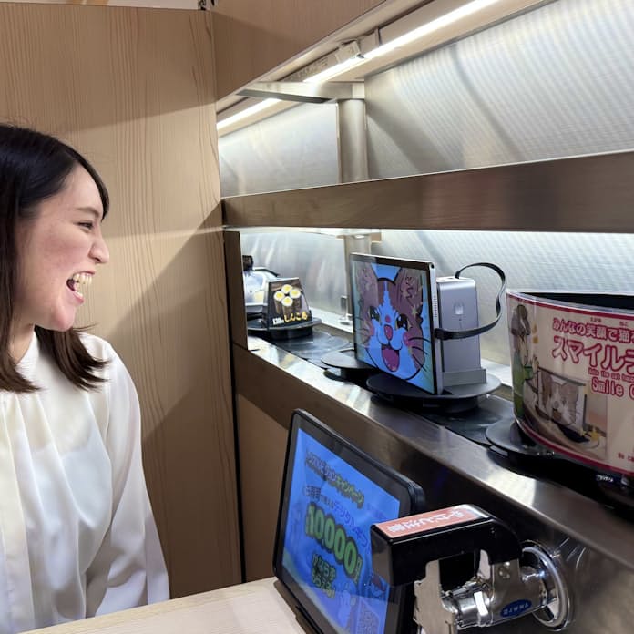 みんなの笑顔で回転レーンを回る猫ちゃんを笑顔に! 業界初!回転レーン×AI活用で“笑顔”を引き出す新サービス くら寿司「スマイルチャレンジ」―9月22日 月 から順次導入開始―くら寿司株式会社。