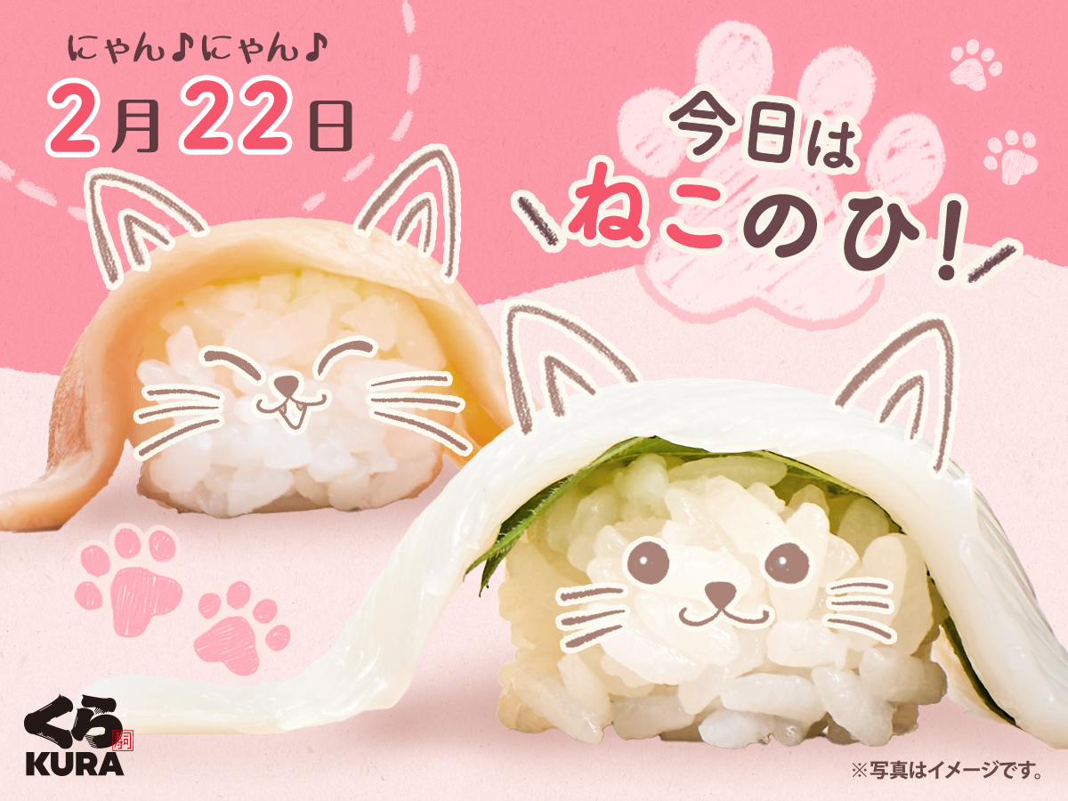 無添くら寿司 公式on X: "今日は2022年2月22日! 『2』がいっぱいつく猫の日✨ というわけで、くら寿司のかわいい猫キャラをご紹介!くら寿司のスイーツブランド、 KURA LOYAL @KURA_ROYAL の白い猫クラジと、 ビッくらポンでもおなじみの すしペット。