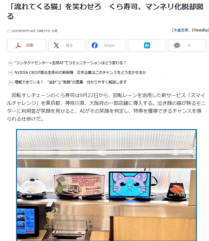 流れてくる猫」を笑わせろ くら寿司、マンネリ化脱却図る - ITmedia ビジネスオンライン。