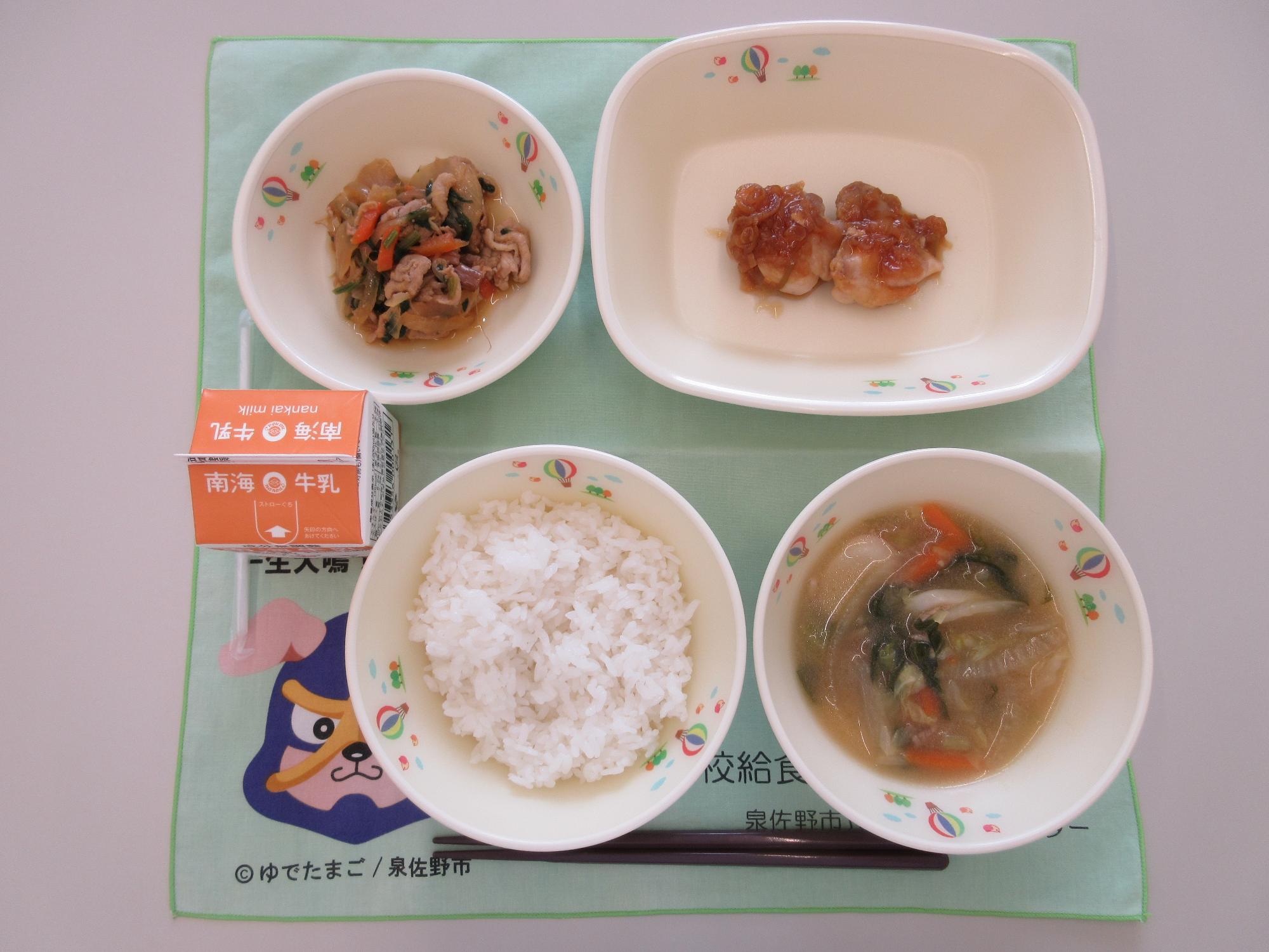 10月5日 牛乳 ビビンバ丼 トックスープ 鶏肉のねぎソースかけ 泉佐野市。