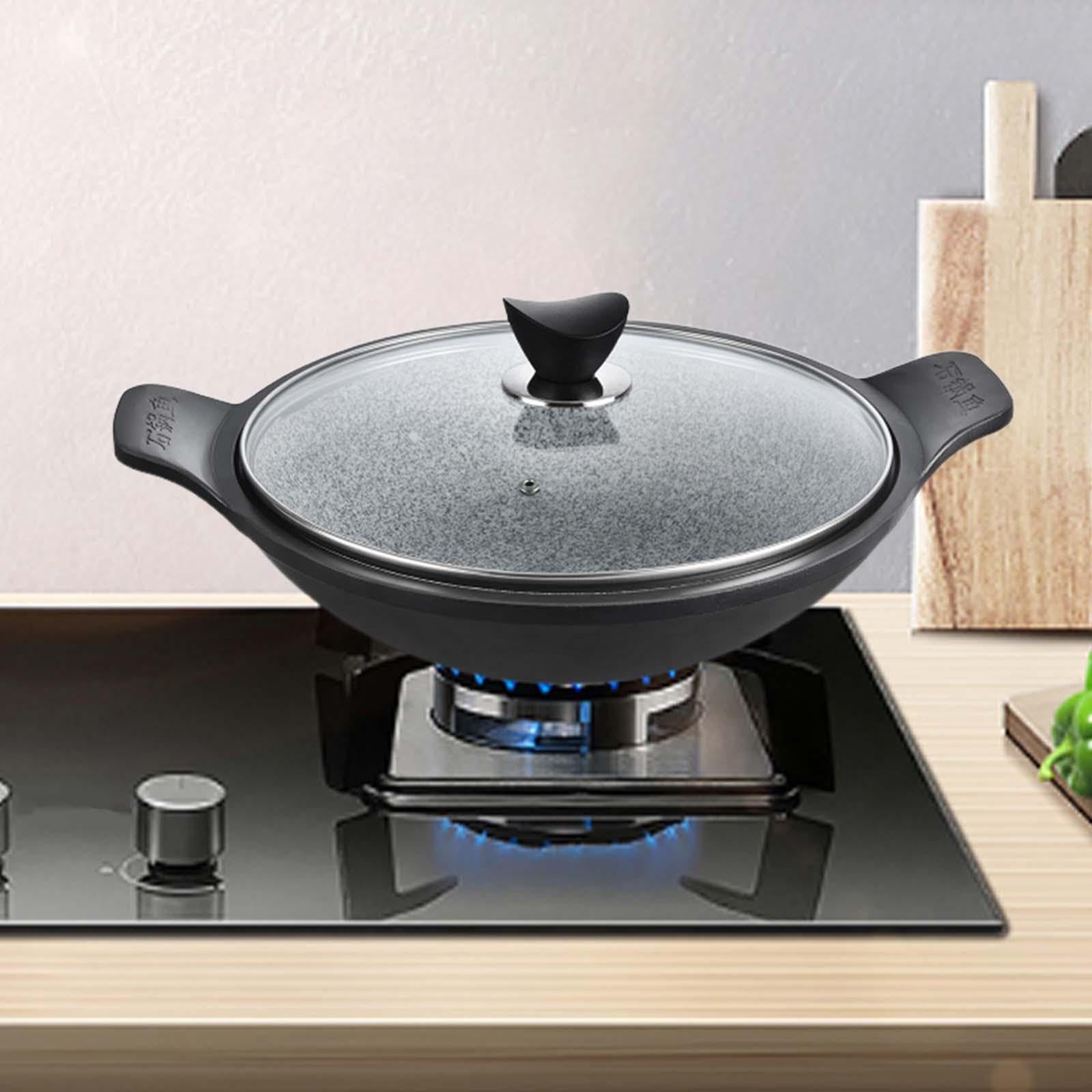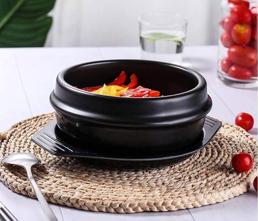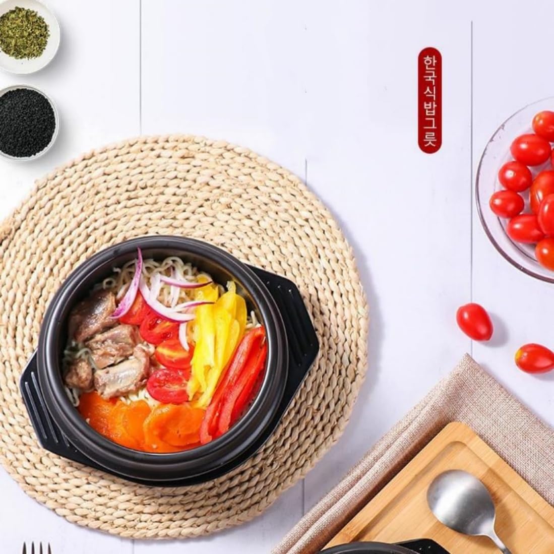 PEWETE ビビンバスープ用ガラス蓋付き石鍋、再利用可能、ノンスティック、キムチスープ、ビビンバ。