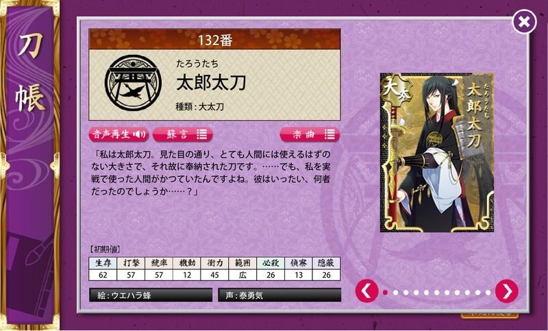 刀剣乱舞 太郎太刀ってどんな刀剣?レシピ・ドロップ・ステータス情報刀剣乱舞Pocket攻略ちゃんねる~とうらぶポケットまとめ~。