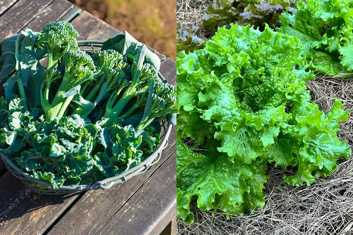 茎ブロッコリーとリーフレタスの混植で害虫対策!草と生き物たちの営みを味方につける、里山菜園の工夫とは?記事みんなの趣味の園芸。