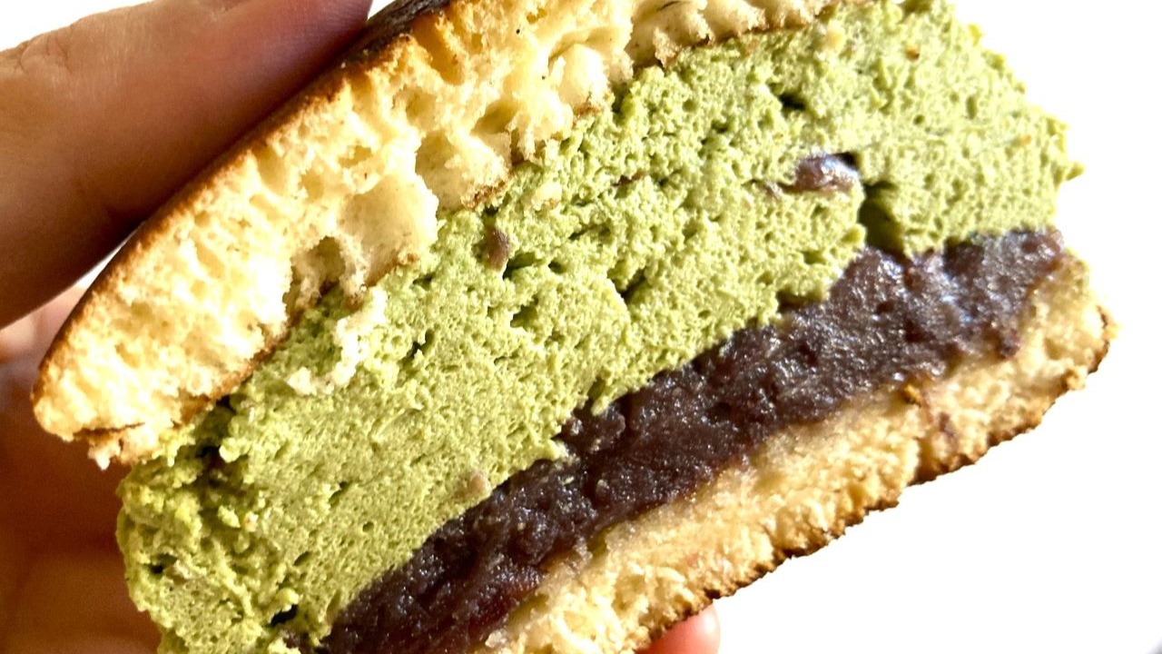 抹茶クリームどら焼き京都和菓子「京菓子司よし廣」。