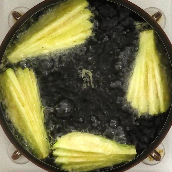 ナスの天ぷら。扇形 末広 の切り方で!天ぷら粉なし。農家のレシピ帳。