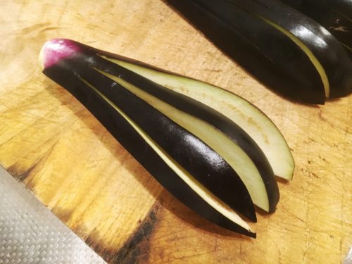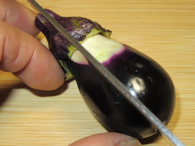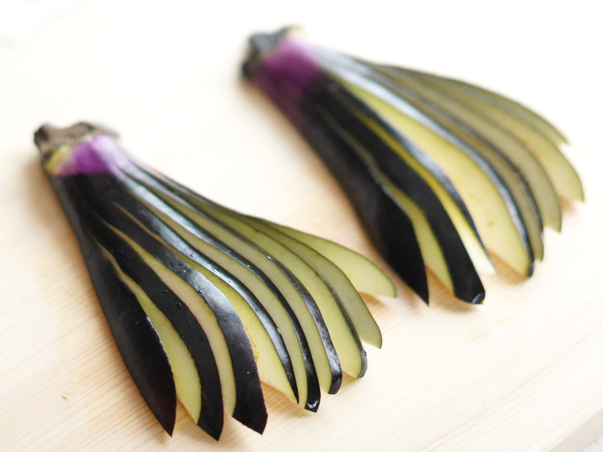 天婦羅用の茄子の切り方 末広茄子。