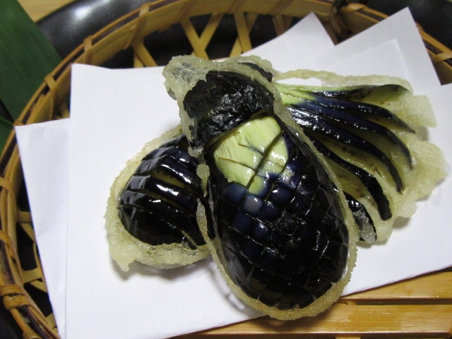 茄子の飾り切りの天ぷら。