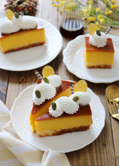 濃厚で簡単! かぼちゃの豆乳プリンケーキ。