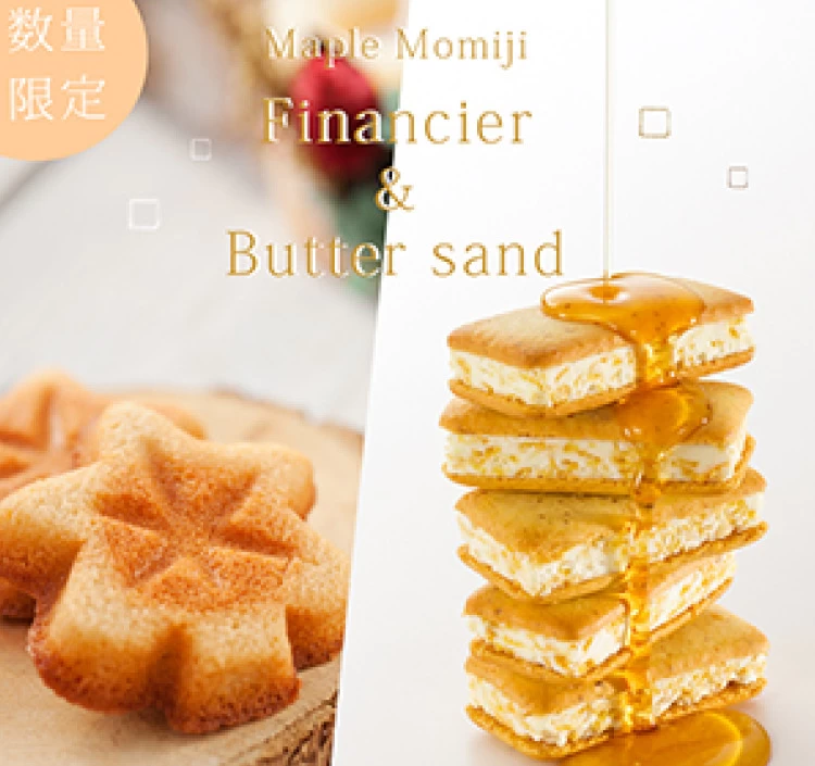 □通販限定□メープルもみじフィナンシェ&メープルバターサンドのセット メープルもみじフィナンシェ8個・メープルバターサンド 10個 >マドレーヌ・フィナンシェをお取り寄せ・通販するなら 旅色。