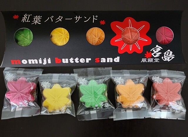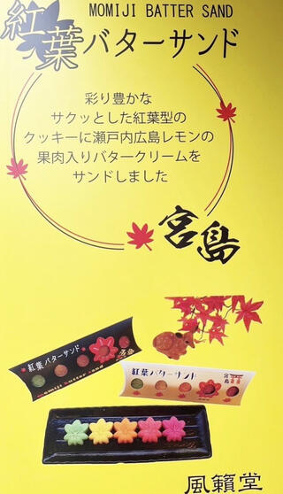 マルハン@はつかいち公式☆広島県初のマルハン☆ on X: " 宮島でのお土産に🎁みなさん、こんにちは😃本日は宮島にある風籟堂 ふうらいどう の『紅葉バターサンド』を紹介します🍁 私が食べたレモン味🍋は バタークリームの甘さととレモンの風味が絶妙にマッチして。