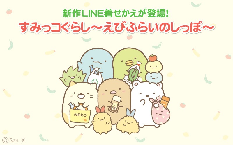 おつかい姿のすみっコたちがかわいい!LINE着せかえ「すみっコぐらし〜えびふらいのしっぽ〜」。