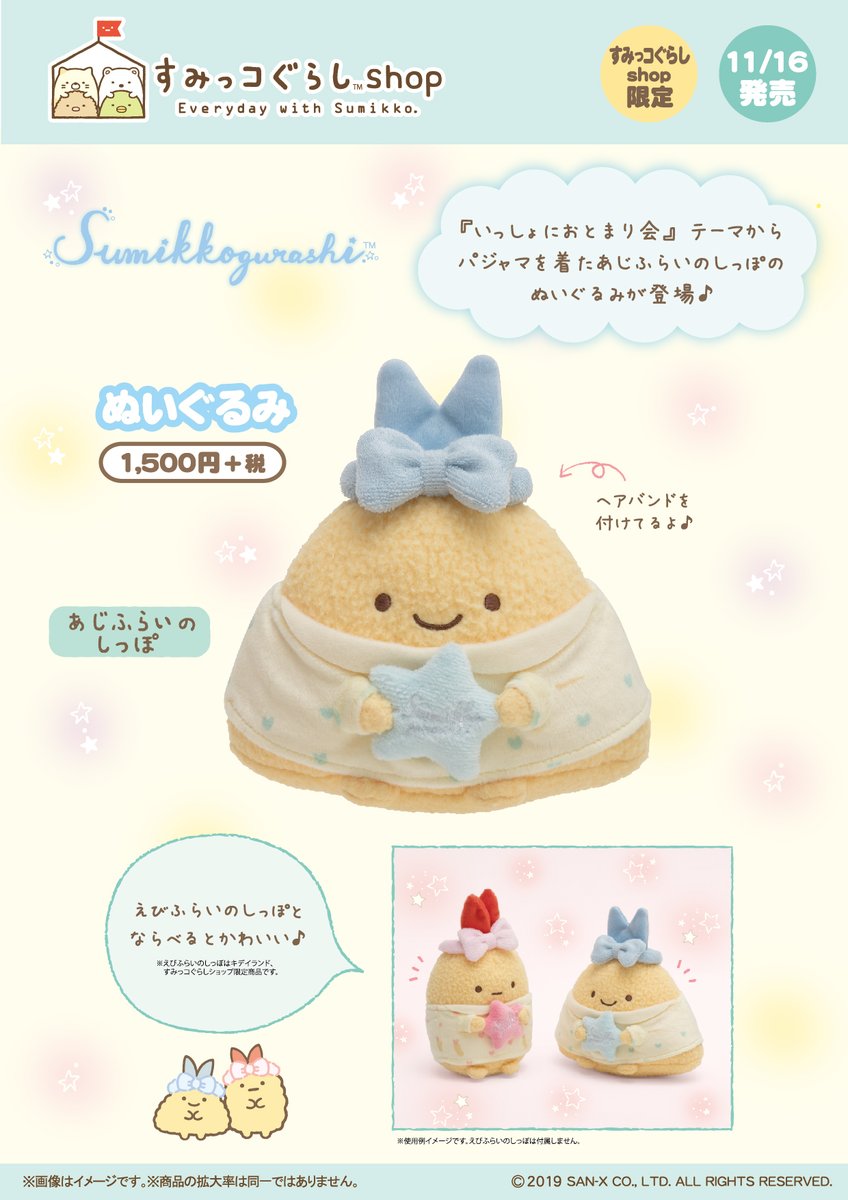 えびてんのしっぽ」「えびふらいのしっぽ」に、「あじふらいのしっぽ」が仲間入りし「しっぽず」結成!すみっコぐらし新テーマ『夢みるしっぽず』の新商品が登場サンエックス株式会社のプレスリリース。
