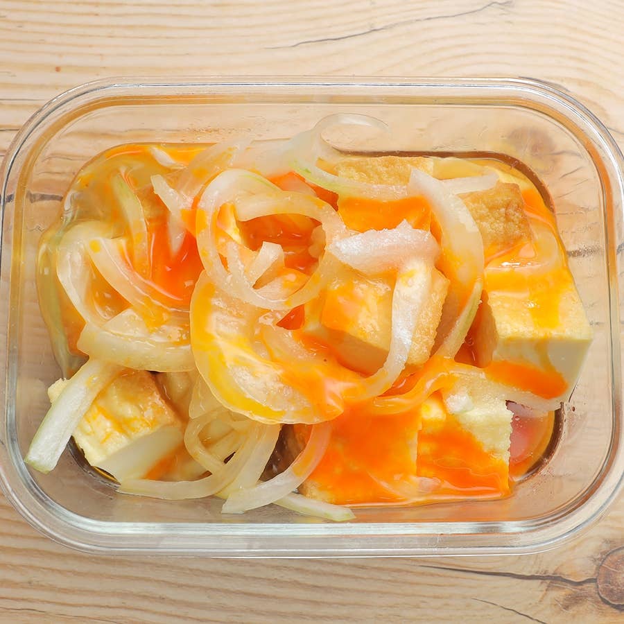 厚揚げと玉ねぎの卵とじ忙しい日に◎火を使わずに作れる簡単おかずレシピ・作り方Tasty。