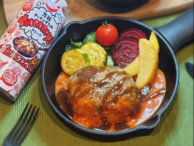 トマトクリームガーリックペッパーソースのハンバーグ オハナシマンSnapdish スナップディッシュID:C5b0Sa。
