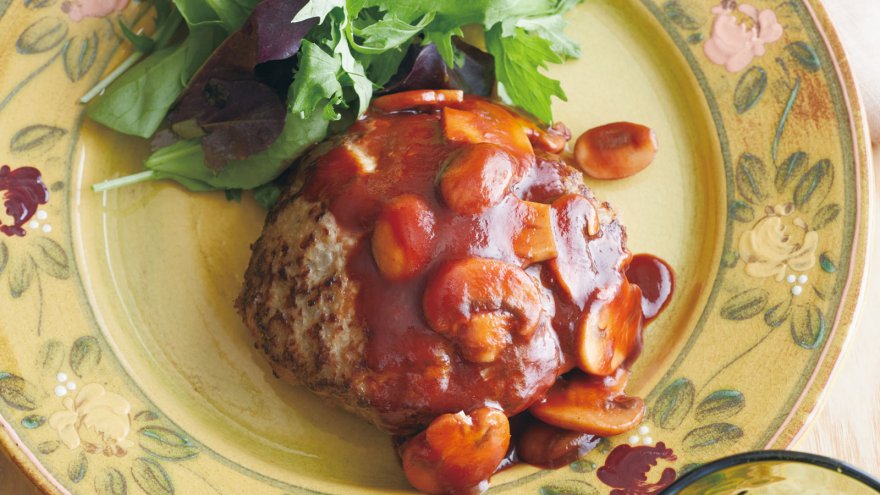 レストランの味!, 白ガーリックソースのハンバーグ。