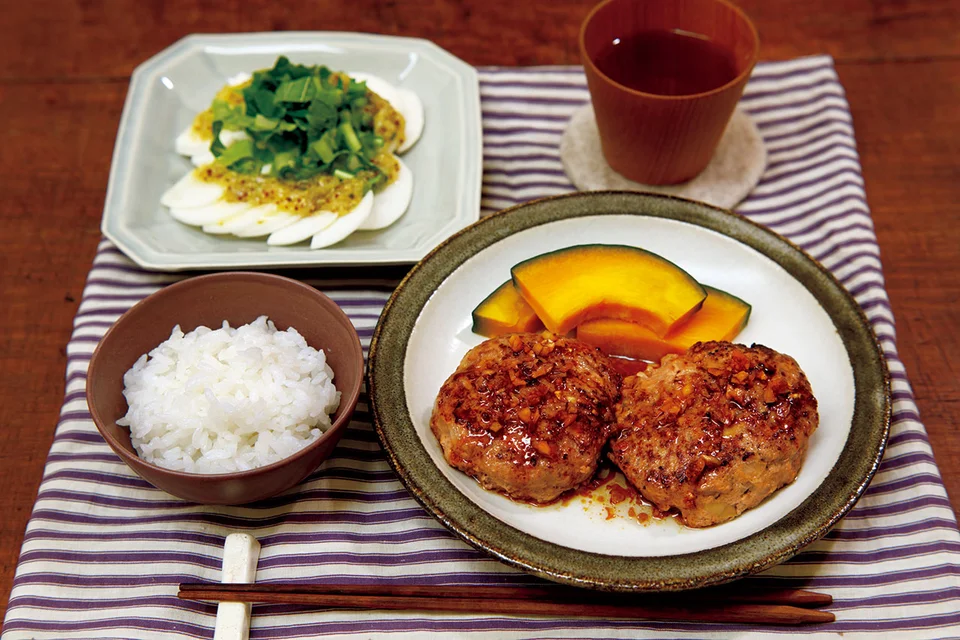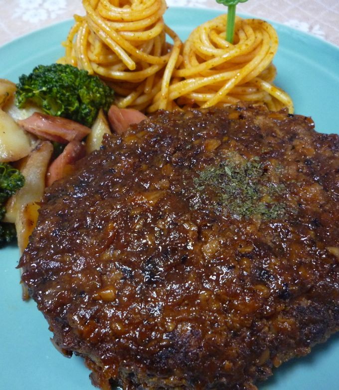 しっかり食べたい時に! にんにく醤油ハンバーグ。