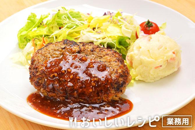 ハンバーグ ガーリックオニオンソースエバラ業務用商品サイト 〜レシピ検索など外食店のメニュー作りを応援。