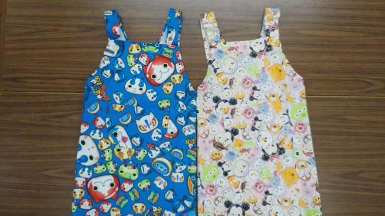 子供用エプロンの作り方ゴムタイプ 90・100サイズ かぶるだけで簡単着脱型紙なしで作れますキッズエプロン。