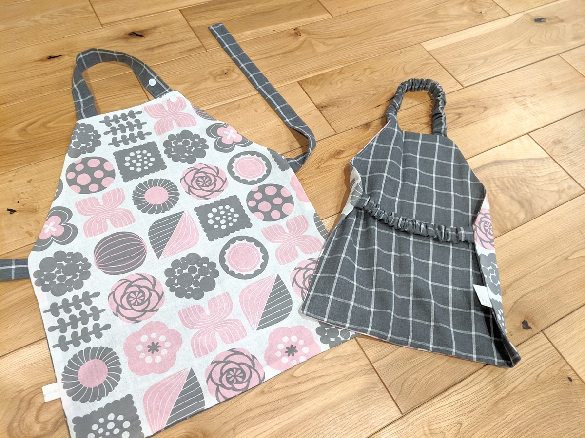 エプロンの作り方 子供サイズでゴム付き裏地付きでリバーシブル対応。