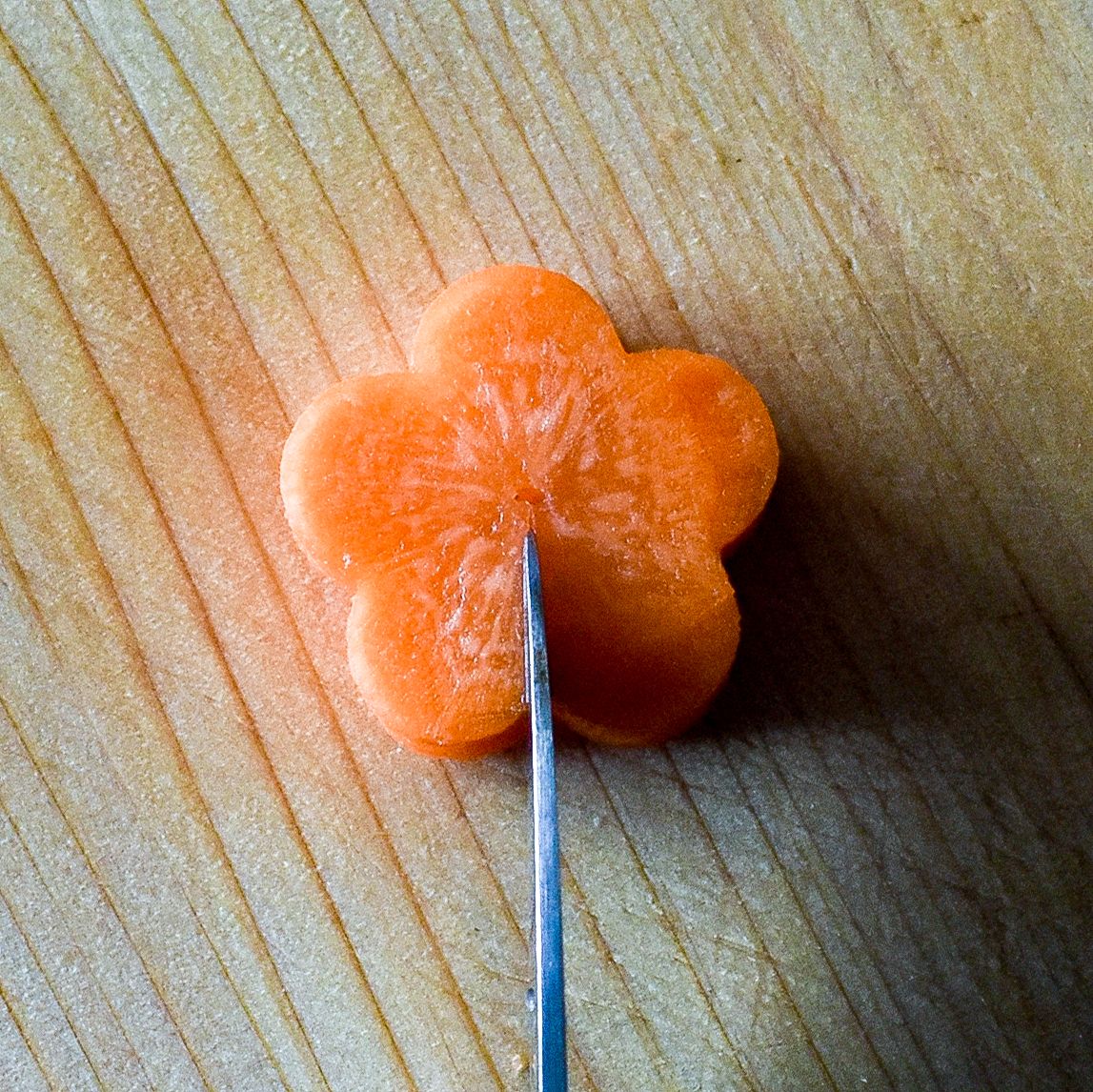 抜き型で簡単!にんじんの飾り切り「ねじり梅」の切り方 – icoro。