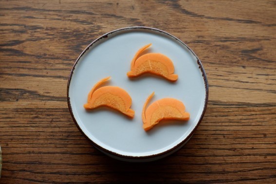蝶々人参の詳しい切り方 飾り切り手順とコツ 春の料理演出方法日本料理、会席・懐石案内所。