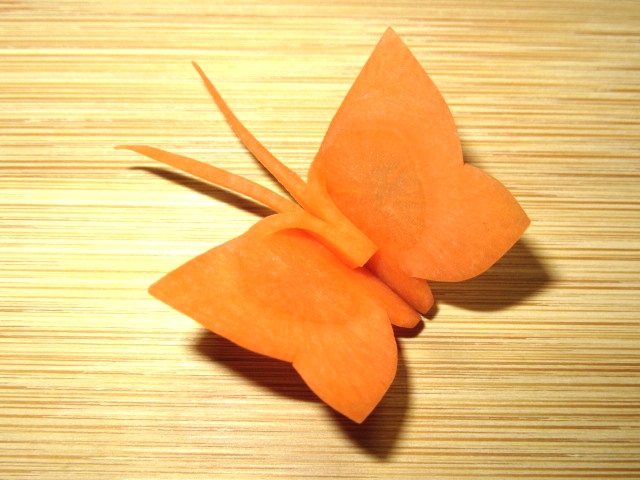 春の飾り切り~人参で蝶々を作る方法日本料理、会席・懐石案内所。