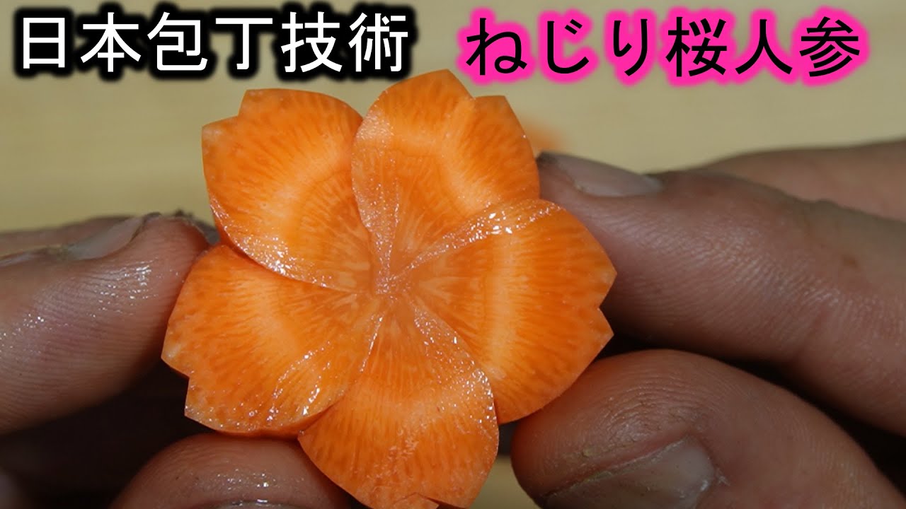日本和食包丁技術ねじり桜人参の作り方料理人目線飾り切り。